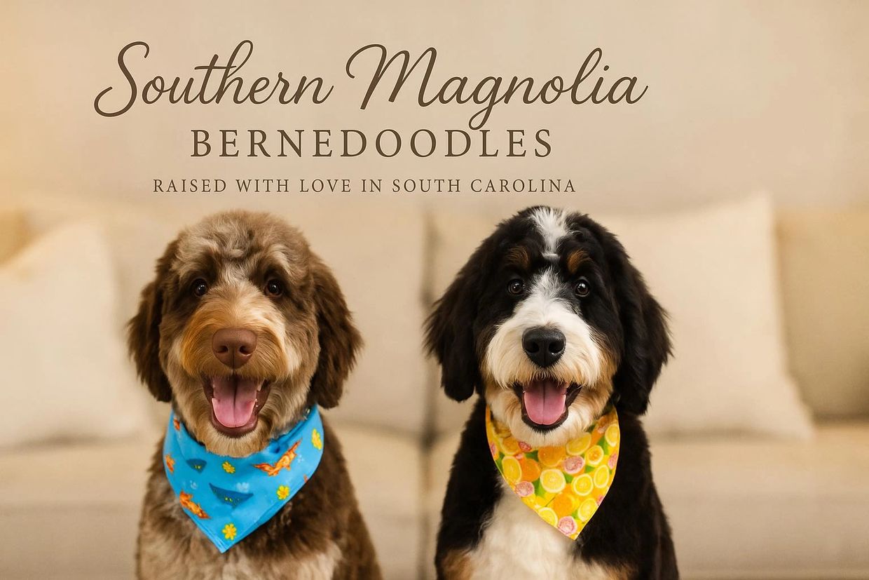 Now, we are excited to begin our own journey—combining everything we’ve learned with our own love and vision to raise Bernedoodles the Southern Magnolia way. Our focus is on health, temperament, and family connection, ensuring that every puppy we raise is not only well-cared for, but also ready to thrive in their forever homes.